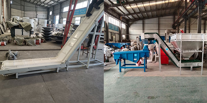 大傾角皮帶輸送機主要由波狀擋邊輸送帶、驅動裝置、傳動滾筒、改向滾筒、壓帶輪、托輥、托帶輥、立輥、拍打輪清料裝置、拉緊裝置等部分組成。大傾角皮帶輸送機其結構是在平形橡膠運輸帶兩側粘上可自由伸縮的橡膠波形立式“裙邊”,在裙邊之間又粘有一定強度和彈性的橫隔板組成匣形斗,使物料在斗中進行連續輸送。